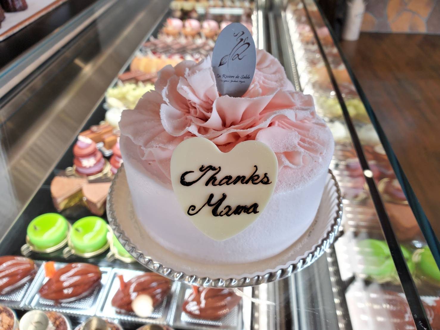 カーネーションをイメージしたチョコレートフリルのデコレーションが可愛らしいアントルメ♪