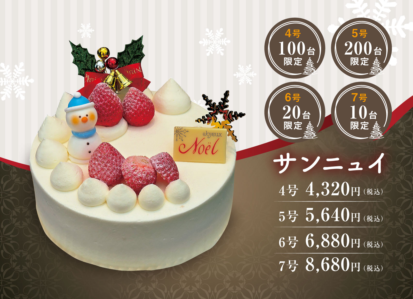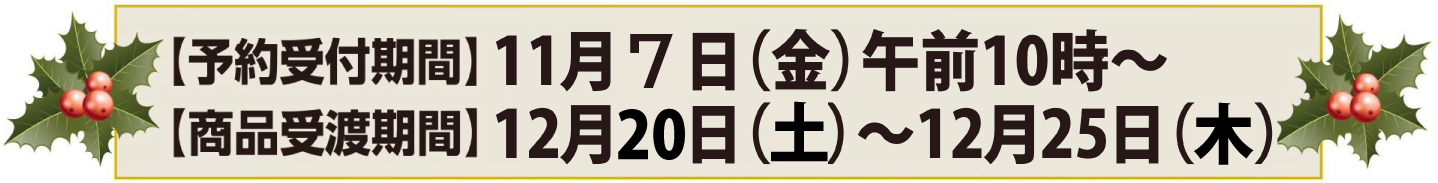 ・クリスマス期間中はホールケーキのみのご予約でお願いしております。